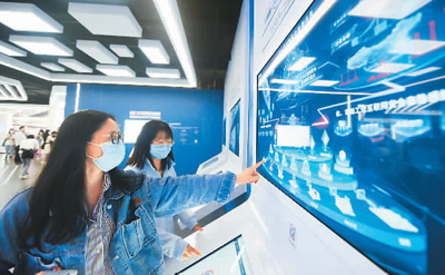 市民在位于浙江省杭州市蕭山區(qū)的長(zhǎng)三角(杭州)制造業(yè)數(shù)字化能力中心體驗(yàn)工業(yè)云安全。 龍 巍攝(人民視覺(jué))