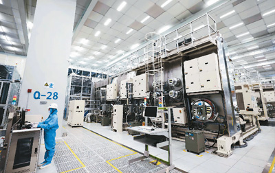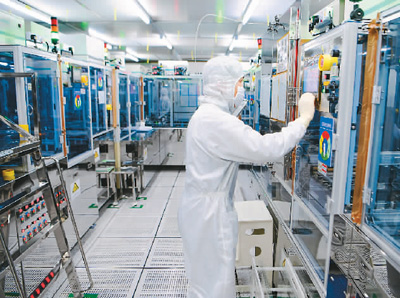 在安徽省合肥市新站高新區(qū)的合肥京東方顯示技術(shù)有限公司的智能工廠內(nèi),依托于工業(yè)互聯(lián)網(wǎng)的高新生產(chǎn)線有序運(yùn)轉(zhuǎn),自動(dòng)化設(shè)備精準(zhǔn)地完成玻璃基板的傳輸、加工、檢測(cè)等生產(chǎn)全過(guò)程。 解 琛攝(人民視覺(jué))