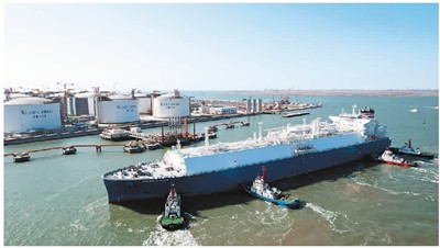 11月1日,裝載6萬(wàn)噸液化天然氣的“耐力”號(hào)LNG運(yùn)輸船靠泊在中國(guó)石化天然氣分公司天津LNG接收站1號(hào)泊位。目前,該站正穩(wěn)步推進(jìn)二期儲(chǔ)罐工程建設(shè),進(jìn)一步提升儲(chǔ)氣能力,保障冬季用能需求。 王卓然攝