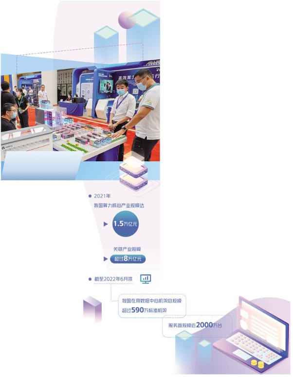 當(dāng)前,我國算力產(chǎn)業(yè)規(guī)模快速增長,近5年平均增速超過30%,排名在全球第二位。據(jù)中國信息通信研究院測算,2021年,算力核心產(chǎn)業(yè)規(guī)模超過1.5萬億元,關(guān)聯(lián)產(chǎn)業(yè)規(guī)模超過8萬億元。其中,云計算市場規(guī)模超過3000億元,IDC服務(wù)市場規(guī)模超過1500億元,人工智能核心產(chǎn)業(yè)規(guī)模超過4000億元。