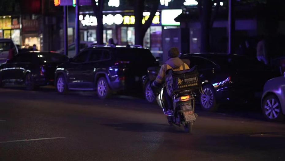 夜幕下外賣騎手的“飛馳人生”。圖片來(lái)源:受訪方供圖