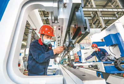 近年來,安徽省馬鞍山市博望區(qū)以產(chǎn)業(yè)創(chuàng)新升級為主線,推動博望機床從“制造”邁向“智造”,遠銷80多個“一帶一路”沿線國家和地區(qū)市場。圖為1月9日,博望區(qū)亞威機床制造有限公司技術(shù)人員在趕制出口歐洲的智能數(shù)控機床。 王文生攝(人民視覺)